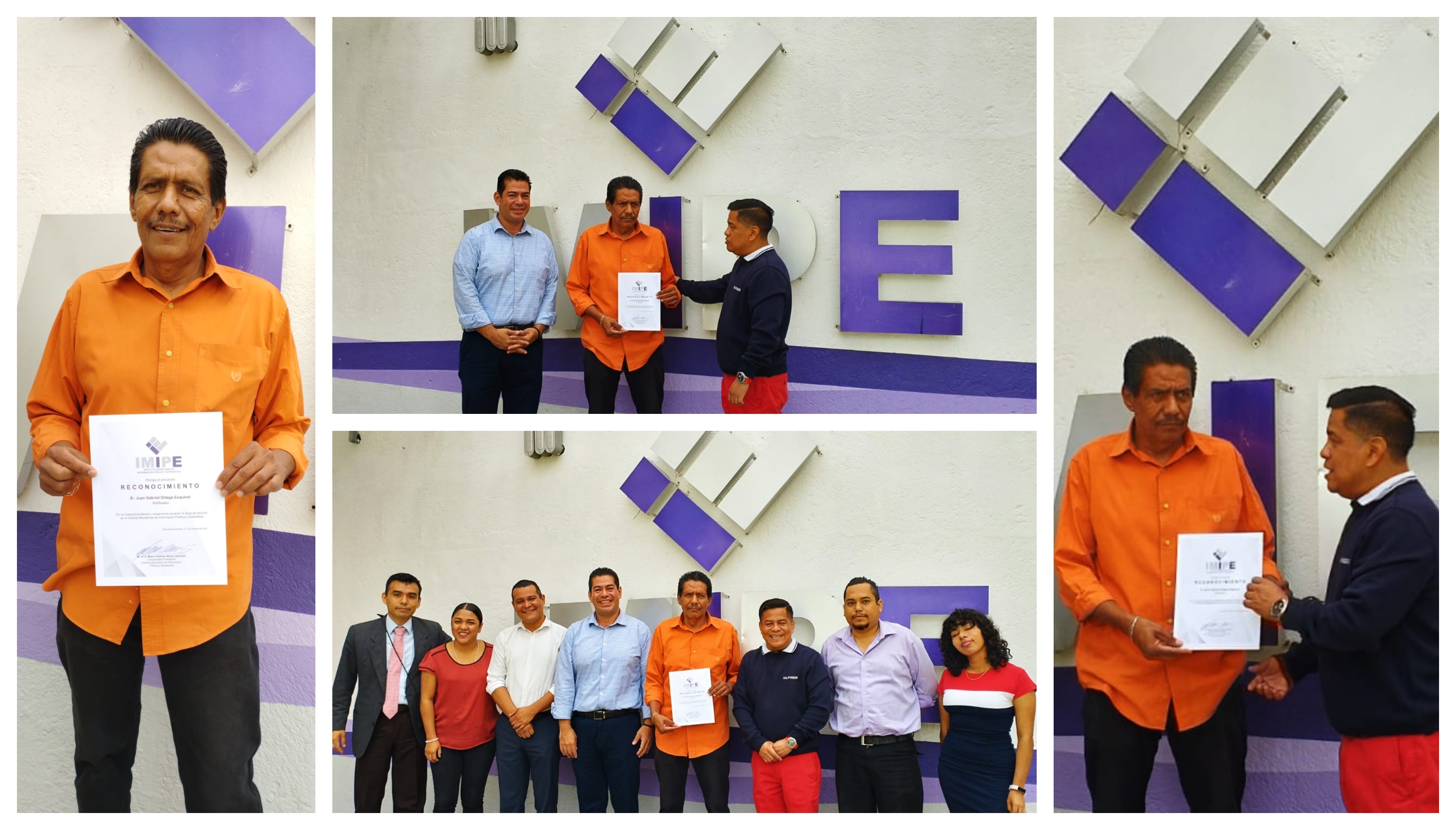 Por su trayectoria laboral y compromiso durante 15 años de servicio en el Instituto Morelense de Información Pública y Estadística IMIPE, Juan Gabriel Ortega Esquivel, uno de los notificadores del Órgano Garante, recibió un reconocimiento de manos del comisionado presidente del IMIPE, Marco Antonio Alvear Sánchez.