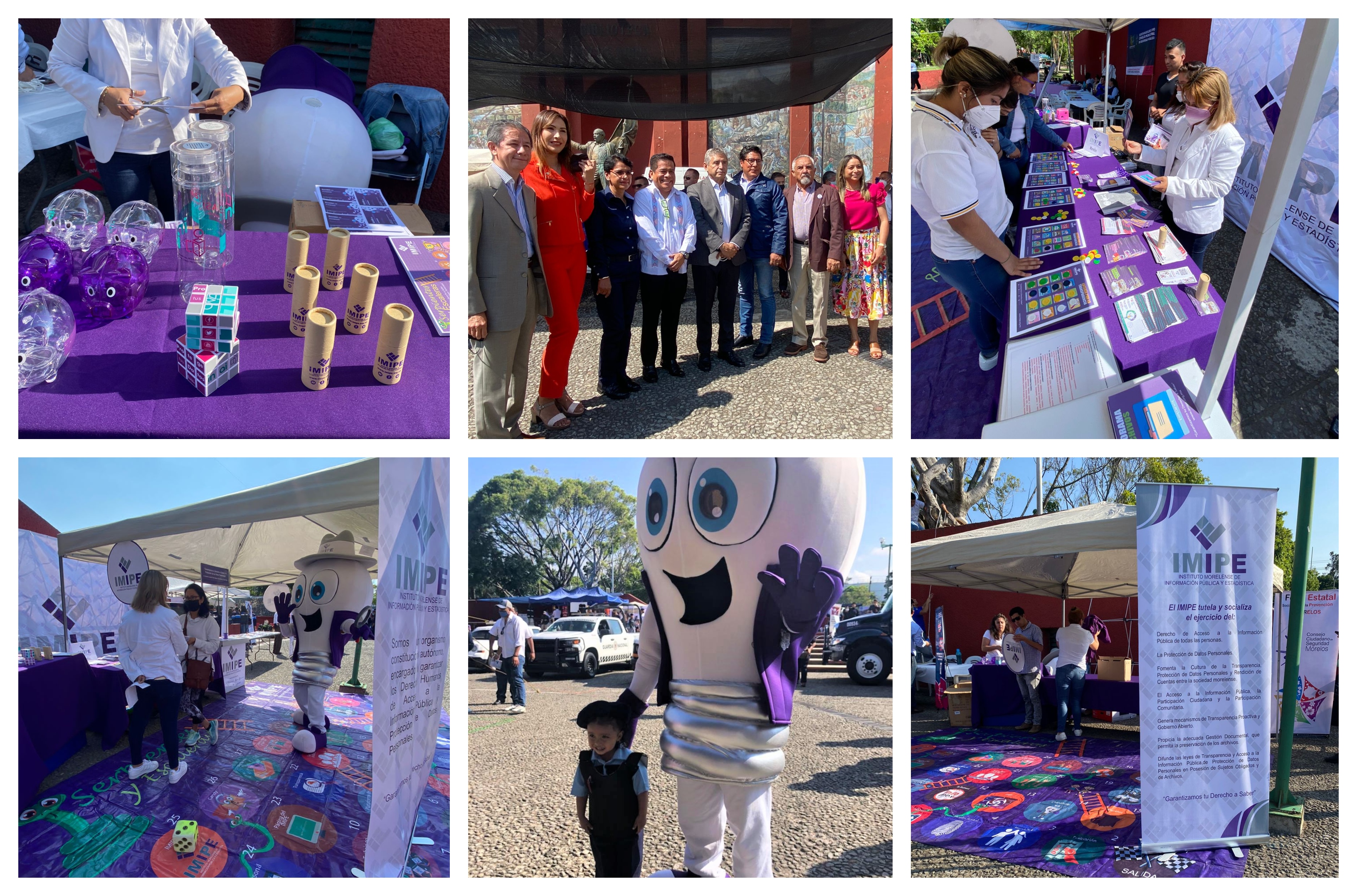Servidores públicos de diversas áreas administrativas del IMIPE, interactuaron y difundieron de manera amena y didáctica la razón de ser del Instituto y atendieron a los visitantes en el stand que el Órgano Garante instaló para la ocasión y que además, contó con la participación de la botarga que identifica al IMIPE, llamada Chipahua, que en Náhuatl equivale a Transparencia.